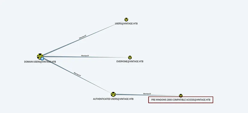 From the enumeration phase, we identify the presence of the Pre-Windows 2000 Compatible Access group.